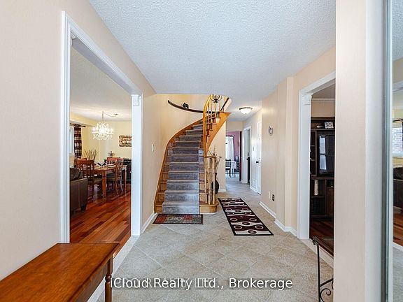 A Must See!!! Beautifully maintained 4-bedroom home in the highly sought-after Olde English Lane neighbourhood. This warm and inviting home offers scenic park views and is conveniently located close to Heart Land Town Centre, Major highways, schools, hospital, places of worship. Home has a spacious layout featuring a formal living and dining area, an inviting family room with fireplace, An eat-in kitchen with stainless steel appliances and recently upgraded counter top and back splash. Four generously sized bedrooms with complete hardwood flooring, recently updated bathrooms. An elegantly furnished basement, with built-in book shelf, wet bar and a luxurious Jacuzzi. This home is the perfect blend of elegance, comfort, and convenience. Dont miss out, schedule your showing today!