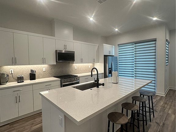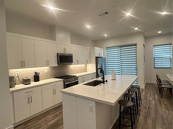 Toll Brothers gated community at 100 West in Anaheim. Well-styled contemporary luxe. The fully furnished unit has a welcoming foyer and downstairs bed/bath flowing up the inviting stairs to the spacious open Kitchen and Great room area with covered balcony. The well-designed gourmet kitchen is highlighted by a center island with breakfast bar, plenty of counter and cabinet space. This home has in Kitchen upgraded Craftsman Midnight Cabinetry, Upgraded Calcutta Quartz on Kitchen Counter-tops and back splash. includes Upgraded Shower walls in Primary Bathroom. The serene primary bedroom suite is enhanced by an ample walk-in closet and spa-like primary bath with luxe shower and private walk-in closet. Two additional bedrooms shares a full bathroom on the third floor. Additional highlights include a convenient second level powder room and centrally located third level laundry and spacious roof top deck. This unit comes with a solar system. 100 West is centrally located in the heart of Orange County minutes to major entertainment & shopping centers such as Disneyland, Honda Center, Angel Stadium Walk. Easy & convenient access to excellent medical centers, college-campuses, major freeways & transportation hubs. This beautifully decorated and fully furnished unit is ready for move in