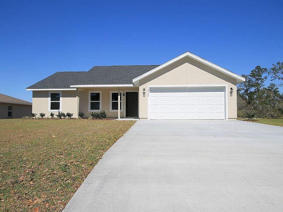 INCREDIBLE 3 bedroom 2 bath home your dream home!! Beautiful home in the rapidly growing Marion Oaks community! Featuring an open floor plan with porcelain tile flooring in social areas and laminate in bedrooms. Wood soft close cabinets with granite counter tops in kitchen accompanied by stainless steel appliances! Ceiling fans make this a highly desired model! 2-Car Garage! Close to the Half Moon & Potts Wildlife Management Area and the Ross Prairie State Forest for the outdoor enthusiasts! Near I-75 for easy commuting!