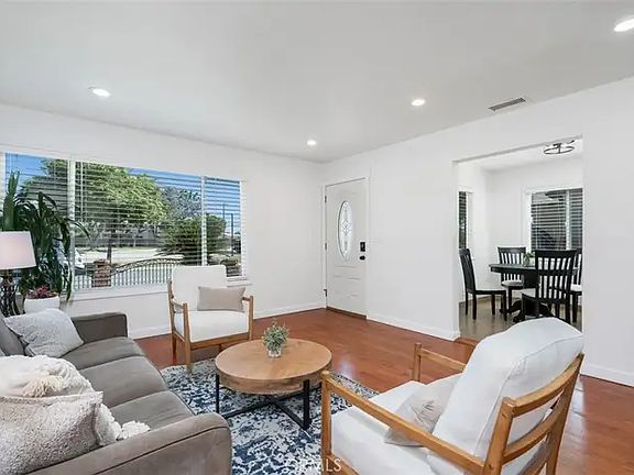 Conveniently located in the charming city of Irwindale, this beautifully renovated 3-bedroom, 2-bathroom home is making its debut on the market for the first time in over half a century. Situated directly across from Irwindale Park, the home offers not only a prime location but also the chance to be part of a nice community. Step inside to find refinished original hardwood floors in the main living area that add warmth and character, while brand new carpet in the bedrooms enhances comfort. The entire interior has been freshly painted, and new light fixtures, switches, outlets, molding, casing, and interior doors lend a clean, cohesive feel. The kitchen has been thoughtfully refreshed with painted cabinets, quartz countertops, and new hardware that blend timeless appeal with modern convenience. Wood blinds provide privacy and style, and central heating and air conditioning ensure year-round comfort. Out back, a covered patio with ceiling fans and a 220V electrical hookup creates a welcoming space for entertaining or relaxing. A dedicated EV charging station adds modern utility. With dual-pane windows, a 3-year-old roof, and fresh exterior paint, this home is move-in ready. With recent renovations and a location across from the city's central park, this home is truly a rare find.