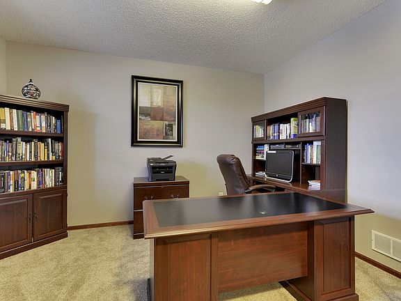Directions County Road 47 to 160th Lane, East to Iodine, North to 162nd, West to Lithium, South to home., Stunning fully finished walkout 2-story home. Hard to find 5 large bedrooms on 1 level! High end, high quality finishes throughout. Includes open floor plan, gorgeous eat in kitchen w/granite counters, custom cherry cabinets, breakfast bar & new SS appliances. Sun-filled dining w/doors to spacious deck, 2 fireplaces, the lower level is an entertainer's dream w/granite bar that walks out onto a patio. Large backyard w/brand new cedar privacy fence. All situated on a cul de sac.