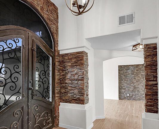 Custom home in Fabens TX is now available.Enjoy the peace and quiet of this wonderful town, with close proximity to I-10. The home offers a single level floor plan with 3 bedrooms (2 MASTER BEDROOMS + 1 regular bedroom), 3 total bathrooms, and a formal living and dining room. In addition it offers a breakfast area next to the gorgeous kitchen with brand new stainless steel appliances. The home offers 2,561 SF, high ceilings, and an astonishing gran entrance with custom iron gate doors. Matte black plumbing fixtures and high end lighting and chandeliers throughout. The front landscaping is beautifully done with a stamped concrete circular driveway and classic river rock. Don't miss this opportunity to own this custom home for an amazing price in the quiet outskirts of El Paso. Seller will contribute 2% for buyers closing costs + $4,000 in landscape or upgrade allowance.