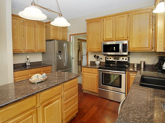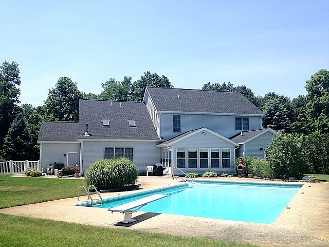 The perfect home! Over 4500 fin sq ft! Main floor features family room with vaulted ceilings and a gas fireplace. Hardwood floors. Kitchen with granite counters, ss appliances, center snack bar island and a pantry. Main fl laundry.Formal living room with gas fp, formal dining room could be used as a main floor master suite with adjacent full bath. Upper master suite w/fireplace, walk in closet and private master bath with whirlpool tub, dual vanities and separate shower. Three additional bedrooms and a family bath finish the upper level. Finished lower level with 6th possible bedroom, game room, family room w gas fp and a 4th full bath. Spend your summers in the three season room overlooking the 20x40 inground pool with new liner and fenced back yard with abundant landscaping. Underground