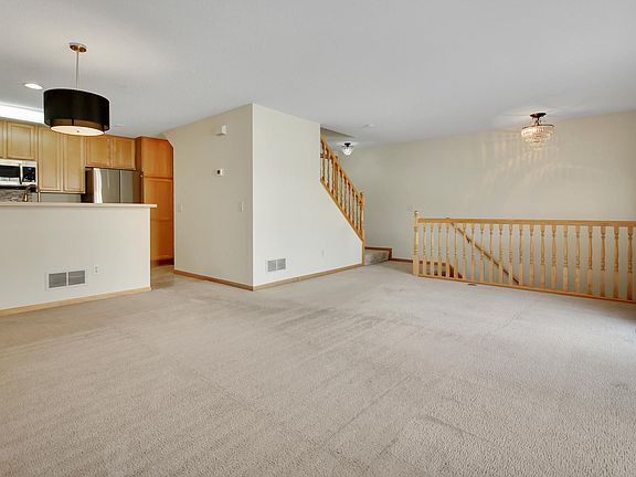 Move-in ready townhome with NEW furnace & AC, and stainless steel appliances. Interior has been freshly painted and carpets professionally cleaned! Located in a quiet & desirable neighborhood in the Osseo school district. Enjoy the oversized west facing deck to enjoy evening sunsets. Interior gets wonderful natural light throughout. You’ll love the open kitchen with breakfast bar & pantry closet.  Upper level offers two spacious bedrooms with wonderful closet space, a walk thru bathroom with dual sinks and separate tub and shower, plus a loft for a perfect office/workout/hobby space. This home has a large 2 car garage with an extra storage nook in garage and additional storage space in the lower level. Neutral and stylish throughout. Fabulous location approx. 1 mile to Fish Lake Regional Park and miles of walking and biking trails nearby. Quick access to 494. Approx. 5 miles to Maple Groves dining & shopping conveniences. This well ran HOA allows pets and rentals!