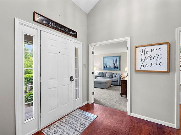 Welcome to this beautiful 4 bed, 3.5 bath, 1.5 story home, featuring a newer architectural roof & nestled in sought after Wildwood. The 2-story foyer greets you with a lovely T-staircase & is flanked by a formal dining room with coffered ceiling & living room with French doors & a bay window. The soaring great room with floor to ceiling windows boasts a gas fireplace & opens to the updated kitchen with 42" soft close door & drawer cabinetry, granite countertops, stainless steel appliances, a butler pantry, travertine backsplash & hardwood floors. Main level primary is relaxing retreat with a bay window & luxury bath with tile floor, separate shower, whirlpool tub & walk-in closet. Upstairs you'll find a Jack n Jill bath with double sink vanity & three spacious bedrooms. Patio & fully fenced back yard! Custom main floor laundry/mud room! Finished LL with full bath & luxury vinyl plank flooring. Beautiful millwork, neighborhood pool, sprinkler system & Rockwood Schools are added bonuses!