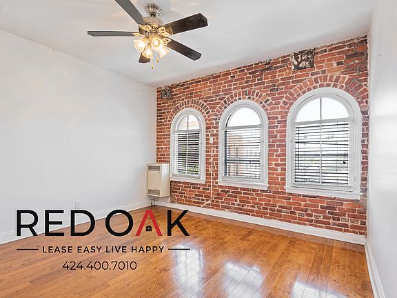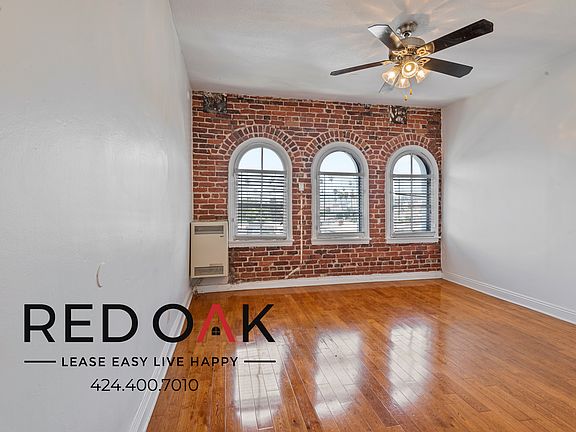 Sunlit Top Floor One Bedroom with Vintage Hardwood Floors, Gas Furnace, Ceiling Fan, Stainless Steel Appliances, Custom Hardwood Built-ins, and On-Site Laundry ~ In Prime Hollywood! Home Highlights: Classic Style: Welcome to a stunning white four-story building adorned with sleek black and gold accents that exude timeless elegance. Tranquil Oasis: Lush green plants strategically placed around the building create a serene atmosphere. Bright & Airy: The large double-pane windows flood the interior with natural light, highlighting the gleaming vintage hardwood floors and exposed brick walls. Year-Round Comfort: The gas furnace provides cozy warmth during chilly days, while the ceiling fan keeps the air circulating on hot summer days, keeping you cool and comfortable. Quaint Kitchen: Custom-built hardwood cabinets, a stainless steel sink and appliances, and modern fixtures. Comfortable Bedroom: Bright and airy, this room offers a generous amount of closet space with custom built-ins. Relaxing Bathroom: Featuring a mirrored medicine cabinet and pedestal sink, built-in shelving, and a luxurious soaking tub with shower option. On-Site Laundry Facilities: Enjoy the convenience of on-site laundry facilities, making your daily routines a breeze. Pets Welcome: Pets are welcome here, ensuring your furry companions can share in the luxury of Hollywood living. Fantastic Amenities: 24/7 Emergency Services and online payment options, elevator access, gated entrance and intercom system. Live Where Glamour Meets Excitement: Hollywood offers a unique blend of history, entertainment, and cultural richness. From the legendary Walk of Fame to the iconic Hollywood Hills, this vibrant neighborhood promises a life filled with memorable experiences. Make this Hollywood haven your home! Available for an immediate move-in. LEASE TERMS: One Year Lease Pictures and descriptions are of EXACT unit Square Footage is approximate. Street Parking Only. Showings may not be 1-on-1. All information must be validated on Red Oaks Website since 3rd party websites can feed incorrect information.