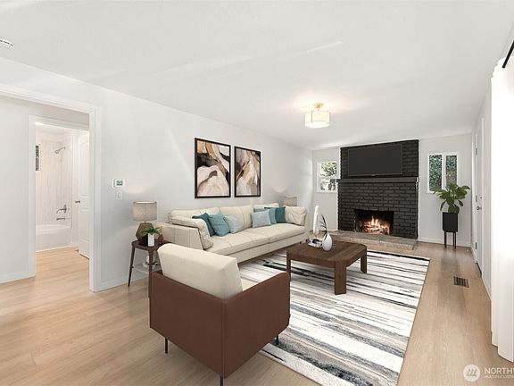 Become a Homeowner in 2025! Take advantage of first-time homebuyer programs. Move right in. Ideal downtown location - just steps from amenities, dining, shopping, Seattle ferry. Head-to-toe updates: new roof, furnace, windows, flooring, paint, plumbing, + garage door w/opener—all the big-ticket items are done! Inside, modern fixtures complement the cozy wall-to-wall fireplace with bold accent wall, while the brand-new kitchen offers ample storage, stylish finishes, and direct access to one of two decks. Spacious bedrooms invite natural light and seamless indoor-outdoor living. Partially finished lower level with laundry provides flexibility to design your ideal bonus space. Fresh, modern, move-in ready—this is Bremerton living at its best!