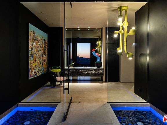 1616 Blue Jay Way is an architectural triumph by Boswell Construction perched in the prestigious Bird Streets. Meticulously crafted over five years, this singular contemporary estate redefines modern luxury, fusing visionary design with sophistication, advanced technology, and unrivaled craftsmanship. Spanning approximately 5,000 square feet, the residence includes four bedrooms and four and a half bathrooms, each space thoughtfully curated to elevate comfort and aesthetic. Throughout the home, travertine stone, hand-applied Venetian plaster, and designer custom finishes blend harmoniously with bespoke furnishings, creating an atmosphere of refined elegance and timeless appeal. The home's elevated position gives the sensation of floating above the city, offering complete privacy and sweeping 180-degree views that stretch from the shimmering LA basin and downtown skyline all the way to the Pacific Ocean. Two striking infinity-edge pools and effortless indoor-outdoor flow create the perfect setting for memorable gatherings, all against the backdrop of city lights and sweeping hillside views. The primary suite crowns the residence, capturing Jetliner views and providing a tranquil sanctuary above the city's vibrant pulse. Just moments from the iconic Sunset Strip yet tucked into its own private world, 1616 Blue Jay Way is more than a home - it is a statement of art, elegance, and architectural brilliance.
