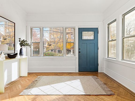 The gracious entry foyer with four windows, ideal for a sunlit retreat welcomes you and gracefully transitions into a spacious living room with a decorative fireplace, setting the stage for cozy gatherings and elegant entertaining.