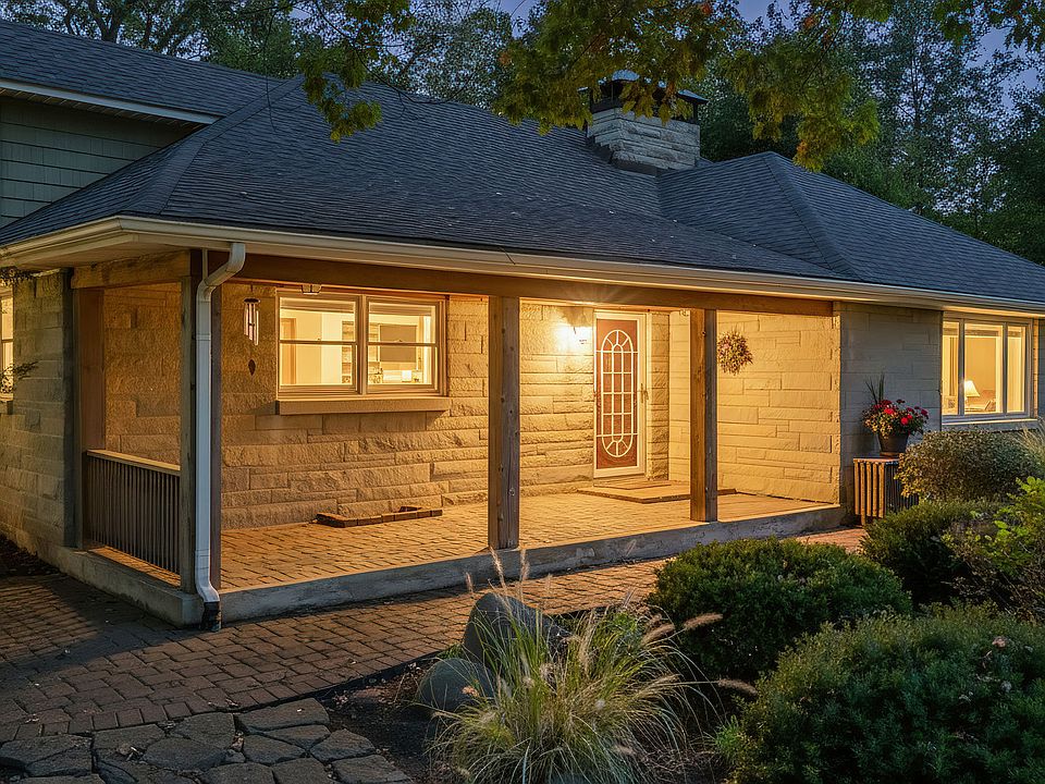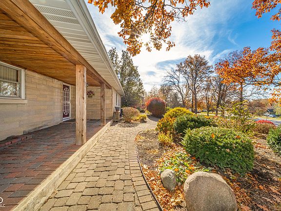 This exceptional 4,000+ square foot home, constructed in 1954, exudes meticulous attention to detail. Comprising 3 bedrooms and 2 bathrooms, this property has undergone meticulous maintenance and boasts custom updates. The extensive landscaping features shrubs and flowers enclosed by terraced walls. The woodwork throughout the home is crafted from Philippine Mahogany. The custom kitchen, designed by Richards Kitchens & Baths of Muncie, incorporates custom Heritage cabinets from Pennsylvania, solid maple drawers, a Jenn-air range with interchangeable cooktops, Corian counters, and a pantry. The custom front porch and back patio, constructed with brick and cedar, provide an idyllic setting to enjoy the surrounding landscape. A foundation was poured for the back patio in anticipation of future owners who may wish to enclose the space. The main-floor bathroom is striking, also designed by Richards, it features natural stone flooring, a custom Corian shower, and DL Couch wall covering. The upstairs bedroom, completed in 2000, is well-insulated and equipped with its own separate heating system. The roof was replaced in 2017, and Trane A/C was installed in 2015. The massive & completely dry basement has historically served hobbyists including knife makers, gunsmiths, lapidarists & painters. Additionally, new garage doors were installed in 2021, and new carpet was installed in the lower level in 2025.