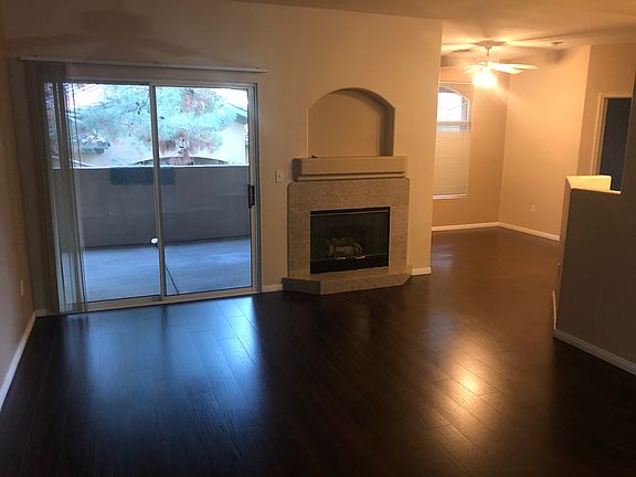 Stunning 3 bed/2 bath 2nd level townhome above garage in a Guard Gated Community in Summerlin! 1,412 sq. ft. One car attached garage. Laminate wood and tile floors throughout! Front living room with a gas fireplace. Dining area. Kitchen has granite counters and a pantry! Ceiling fans! Master bedroom has a walk-in closet and balcony access! Master bathroom has a separate tub and shower! Laundry room with a sink, counter, and storage! Has a large balcony! Has a Community Pool, Clubhouse, and Exercise room! All appliances are included! Pets allowed. Call for details!