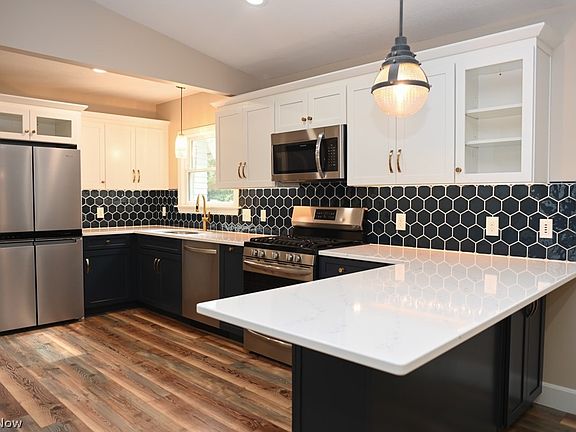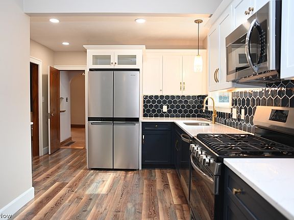 This property has been meticulously cared for and features in excess of $95,000 in updates in the last 10 years! Upon entering through the arched doorway into the living room, you are greeted with gleaming wood floors, fresh paint, and a cozy gas fireplace with new mantle. The light fixtures throughout the house were replaced as a nod to the many modern updates throughout the home. To your left you'll notice the conveniently located 1st floor laundry area with a new washer/dryer in 2020. You can't miss the completely remodeled kitchen! Having just been completed in 2022, the kitchen features new cabinets, flooring, appliances, water and sewer lines, backsplash, and a filtered drinking water system. The half bath next to the kitchen was freshly painted with new flooring. A spacious living room was added to the back of the home, featuring the same beautiful flooring carried over from the kitchen. Moving upward to the 2nd floor, there are 3 bedrooms, one of which was used as a walk-in c