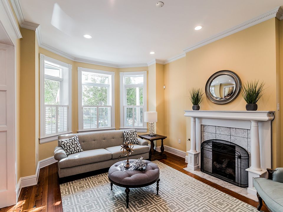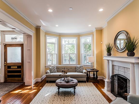 This circa 1910 rowhouse in the heart of the Fan offers almost 4,000 square feet of living space over three spacious floors. Fall in love with the historic details kept intact throughout while enjoying modern day updates. Enter from the covered front porch to an entrance hall with grand staircase and formal living and dining rooms each with gas fireplaces. The eat-in kitchen with large center island has a rare walk-in pantry, stainless appliances, ample cabinet storage, and a powder room. A family room with back staircase to second floor and a laundry room complete the first floor. Upstairs are three bedrooms and two full bathrooms including the master suite with walk-in closet and large tiled bathroom. The third floor provides endless options with a second family room and kitchen, bedroom with full bath, and storage closet with laundry hookups. Outside, a huge deck and covered porch overlooks the landscaped rear yard with access to two off-street parking spaces. Numerous restaurants, shops, museums, and conveniences are right around the corner!