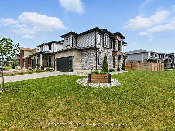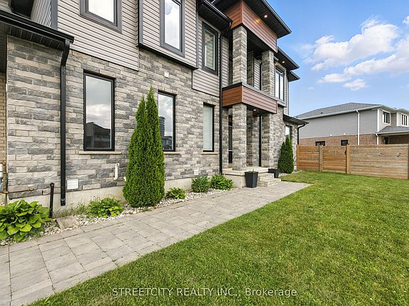 Welcome to this beautifully designed 2-storey modern home in a quiet, family-friendly neighborhood in North London. Situated on a premium corner lot with a fully fenced backyard, this home is walking distance to schools, trails, and parks and just minutes from Masonville, UWO, and all amenities. This home offers luxury finishes and functional space throughout. (See list for upgraded finishes). The main floor features a sunlit open-concept layout with high ceilings, large windows, and an elegant blend of stone, wood, and contemporary design. The kitchen boasts quartz countertops, premium cabinetry, stainless steel appliances, and a large island ideal for entertaining. The main level also includes a spacious family room, formal dining area, and a office. Upstairs, you'll find 3 spacious bedrooms, including a luxurious primary suite with a walk-in closet and private ensuite. Additional features include large windows, custom blinds, and upgraded flooring. The unfinished basement offers endless potential for a rec room, gym, or in-law suite. laundry is located in the unfinished basement and can also be relocated to the main level. The options are endless!