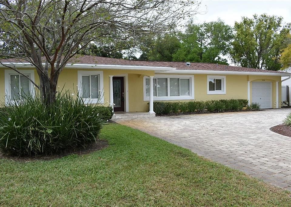 Beautiful remolded home that has been freshly painted, new fixtures, new carpet and ready to move in. As you drive up to the pavered circular drive you will be welcomed by the lush landscape and great curb appeal. This 2 bedroom, 2 bath home is very open and spacious. Travertine floors in all areas, new carpet in bedrooms. Kitchen has wood cabinets, granite counters, Travertine backsplash and recessed lighting. Greatroom is open and spacious with ceiling fans, and 2 set of French doors leading to the fenced tropical backyard and paver patio. Belleair is a beautiful community close to shopping, biking trails and the Beach.