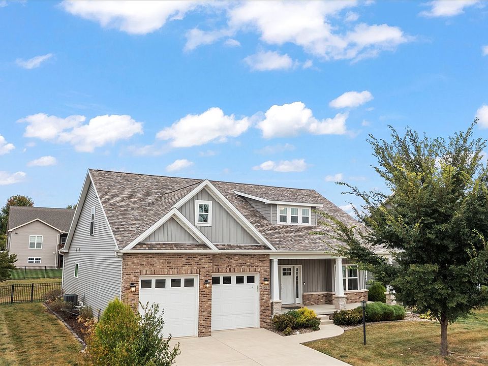 Welcome to this like-new, 1.5-story gem in Conway Farms! With over 3,100 square feet of finished space this home offers 5 spacious bedrooms and 3.5 bathrooms, combining style and functionality in every detail. Conveniently located close to Middletown Prairie Elementary School, this property features a welcoming front porch that opens to an airy floor plan with vaulted ceilings in the main living area and a beautiful fireplace as the centerpiece. The bright, white kitchen is a chef's dream, with stainless steel appliances, a subway tile backsplash, and ample counter space perfect for cooking and entertaining. The first-floor primary suite offers both elegance and convenience, featuring a luxurious bathroom with a soaker tub, a walk-in shower, and a spacious walk-in closet. Upstairs, you'll find two additional spacious bedrooms, a full bathroom, and a cozy nook area ideal for a homework station, reading corner, or small office. Downstairs, the full basement with 9-foot ceilings includes a generous rec room, a fifth bedroom, and extra storage space, offering versatility for various lifestyle needs. Additional amenities include an irrigation system, a whole-house water filtration, and a water softener system, making this home the perfect blend of style, space, and modern comfort, thoughtfully designed for today's living!