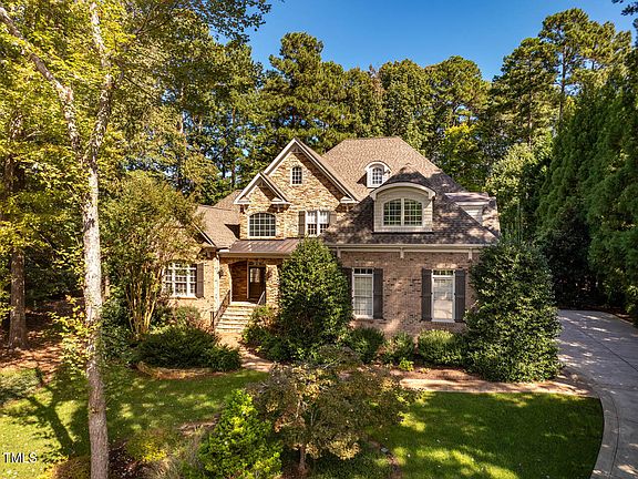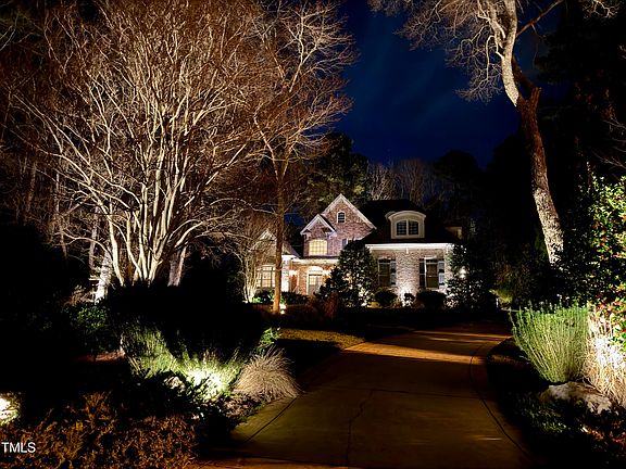 This pristine home, sited beautifully on a just over one-acre lot, has been lovingly owned and transformed by the same family since its build. You will immediately notice some of the most enviable landscaping in all of the triangle. Original trees are balanced with a thoughtfully architected landscape design project (2008-2010) and specimen plantings, all of which is mature, creating a serene setting impossible to achieve in new clear-cut or small lot-size neighborhoods. Upon entering the home, you will appreciate the interiors, intentionally and carefully designed to curate an elevated, transitional home, balancing warm/cool hues, metal finishes, and textures to leave a truly timeless and subtle, versus trendy, aesthetic. Sophisticated designer lighting and wall coverings and custom window treatments convey throughout the home, reflecting years of interior design projects, providing not just ''move in ready'' but a designer move in ready environment. The floor plan brings the best of everything... first floor primary suite, five total bedrooms (one of which is currently being used as a second home office), first floor front living area (currently used as a primary office), and a hybrid open concept space with both open and extended living spaces with a harmonious flow. Every room perfectly proportioned, and EVERY room is updated from original custom build. The above-garage flex space can be pivoted to accommodate home theater, home gym, and/or play/game room. The unfinished attic and spacious fully finished garage provide worlds of storage. The outdoor living space is extensive and harmonious with the overall environment. A back terrace extends into an architected patio and outdoor kitchen including a gas + wood burning firepit to entertain, all canopied by gorgeous trees to shade the space. The adjacent screened porch compliments the outdoor living options. Extensive natural screening ensures, whether from the inside or outside, you experience an abundance of greenery and privacy, and view almost nothing else from adjacent properties. Additional upgrades include: comprehensive landscape lighting, custom millwork throughout, fully integrated and expansive home automation (spanning climate, lighting, security, audio, windows, sensors, garage doors, etc), whole house audio, high-end tile choices, counters, and designer bathroom fixtures. All major upkeep is current including a new roof (2024), and major appliances and HVAC all having been replaced since build. 1616 Kirkby provides a secluded, established neighborhood with proximity to North Raleigh shopping & dining conveniences, and is a perfect central location for commutes to downtown Raleigh, RTP, Durham, and Wake Forest.