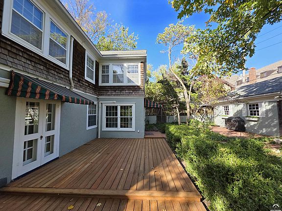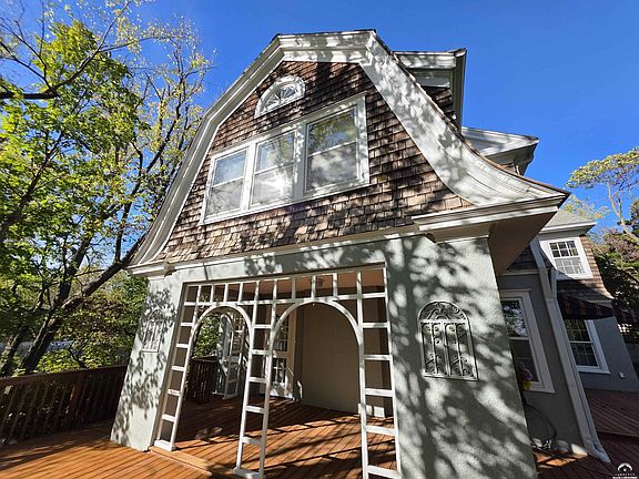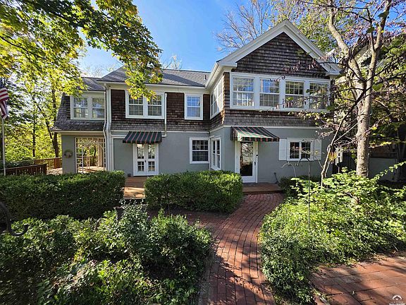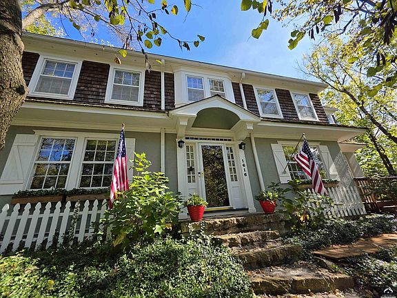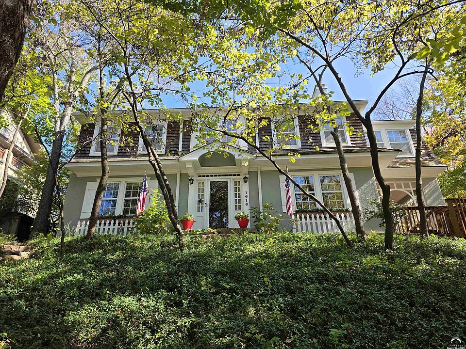 Once in a lifetime opportunity to live "On The Hill" in Lawrence Kansas! This three owner home was built in 1923 by G. W. Stratton a Chemistry Professor at The University of Kansas. The land is part of the original Fort Thatcher Place "the most historic part of Lawrence" according to the LJ World. From this spot you have a direct line of sight to Wells Overlook and in 1863 people were here on the lookout, waiting and watching for Quantrill's Raiders to come from the South. The home sits on the southeast corner of the hill and is very close to the Chancellors home, Allen Fieldhouse, David Booth Memorial Stadium, Kansas Union and the Oread Hotel. One of the first things you will notice is yard with the abundant trees. The home is built on the hill and offers exceptional privacy and room to entertain with ease. "an oasis in the heart of the city" has been the common thought when describing the back yard. The vinca makes the yard virtually maintenance free year round, no mowing. There are two large brick patios, a large deck and a drive way that can accommodate 4 or more cars. The front of the home sits on Louisiana, while the back of the home sits on Court Street, a very rare feature. The home has 3 bedrooms, 2 full sun porches and two full baths on the 2nd level. On the main level you have a kitchen, eat in area for a small dining table, a formal dining room, living room, 1/2 bath and reading room. The home has a full basement, large attic, two detached garages for 3 cars, with a loft / playroom above the second garage. In the attic there is a large walk in cedar closet. The floors in the kitchen are heated. The house has a boiler for hot water, original radiators to heat the house and Mitsubishi AC / Heat wall units to provide comfort year round. Lots of storage room in the attic, basement and more. Home also has a Generac generator that runs on natural gas. Local Architect said the home is a candidate for a state and possible national historical preservation designation list. Ask about this for more information. This home has been well taken care of and is move in ready. *Listing agent is related to the seller.