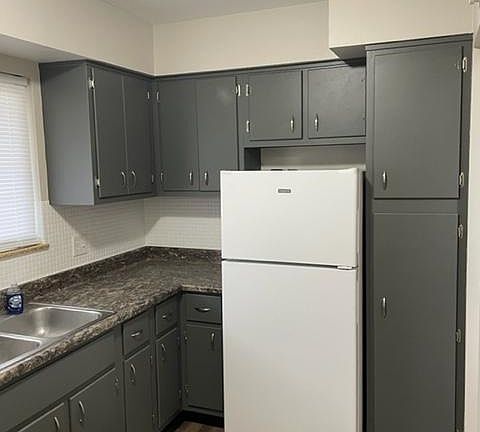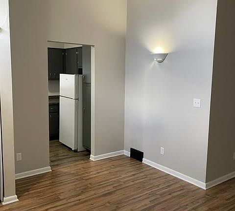 Beautiful and fully renovated Two bedroom/ One bathroom Unit with vaulted ceilings and walk-out back patio. Completely remodeled kitchen with a brand new fridge and stove. Bathroom is completely upgraded with a new vanity and shower surround. New laminate vinyl plank flooring and paint throughout. Unit has been given plumbing and electrical upgrades. Everything has been upgraded from top to bottom. Property has an in-unit laundry room for washer and dryer. (Tenant to supply their own units). Also, huge storage shed out back!