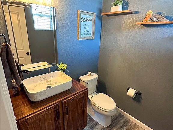 - Updated half bath on the main level, showcasing contemporary design and functionality