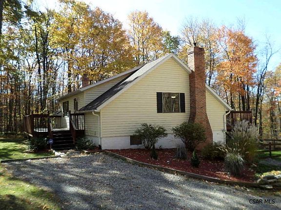 Country living on private 1.8 acres! This 3 bedroom, 2 bath Contemporary style home features spacious maple kitchen with breakfast bar, upgraded baths, open floor plan, beautiful oak hardwood floors throughout. Cozy up in winter to the brick fireplace w/Harman Pellet stove. Master bedroom w/walk-in closet & french doors to rear deck. Main bath w/jetted tub. Relax, enjoy nature from either of the 2 freshly stained decks. New roof (30 yr shingle), gutters, downspouts in 2012. Close to state parks, minutes to shopping & schools. Call to tour!