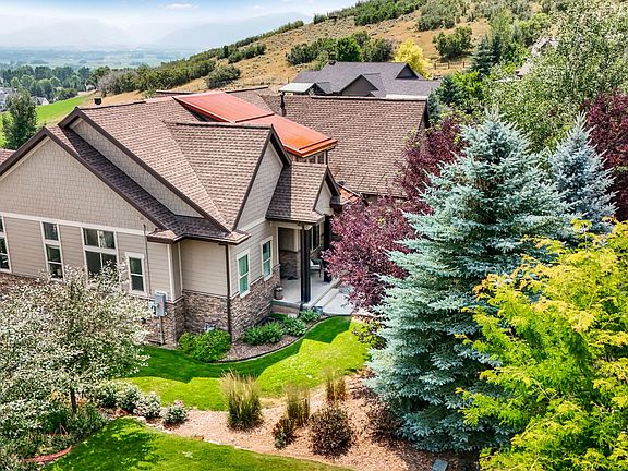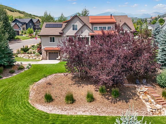 Nestled in the scenic foothills and vibrant fall colors of Wasatch State Park in Midway, UT, this beautifully maintained, modern, west-facing two-story home boasts an open floor plan filled with natural light. Quality craftsmanship shines throughout, with wood flooring, quartz countertops, a chef's kitchen, a main-level master suite, and a convenient laundry room-all appliances included! Enjoy breathtaking views of the Heber Valley and fresh winter snow through large picture windows as you cozy up by one of two fireplaces, or dine and unwind on the spacious covered patio off the kitchen. The .52-acre lot features lush landscaping and mature trees, making it perfect for summer gatherings with friends and family. This home offers four bedrooms, plus an upstairs loft that could serve as a fifth bedroom. The walk-out basement offers the potential for an ADU, complete with a separate entrance, additional parking, a second kitchen, two bedrooms, 1.5 bathrooms, and abundant storage in two large storage rooms. A three-car garage, along with a fourth utility garage, provides ample space for recreational gear, supporting year-round activities like hiking, snowmobiling, biking, boating, and skiing. With direct neighborhood access to Wasatch State Park, outdoor adventures are just steps away. You're also 15 minutes from the award-winning slopes of Deer Valley Resort and other premier ski destinations, making it an ideal location for winter sports enthusiasts. The nearby Provo River, known for its blue-ribbon fly-fishing, completes the full range of outdoor enjoyment. Additional highlights include a 7.36KW solar power system, an electric car charging station, front and rear water features, and an outdoor fireplace area with a gas hookup. Truly a must-see! Buyer and agent to verify all information.