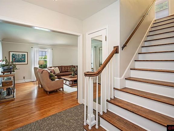 Welcome to this beautifully updated home offering timeless charm and modern upgrades in a prime location near Tourtelotte Park and Pool. Featuring three same-floor bedrooms, this home boasts hardwood flooring throughout the main and upper levels, blending classic character with contemporary style. Step into the inviting living room, highlighted by rich hardwood floors, elegant coved ceilings, a cozy gas fireplace, and access to a bright three-season sunroom. The formal dining room offers the perfect space for gatherings, flowing seamlessly into the stunning updated kitchen, complete with soft-close cabinetry, Cambria countertops, a tiled backsplash, stainless steel appliances, and a charming corner breakfast bar. Upstairs, you’ll find all three bedrooms together, each with beautiful hardwood flooring, and a fully remodeled full bath featuring stylish finishes. The lower level adds even more living space with a spacious family room, laundry room, storage area, and a fun, hidden bar nook — perfect for entertaining. Outside, you’ll love the fenced-in backyard, large stamped concrete patio and beautiful landscaping found throughout the yard. Two detached garages — a 2-stall and a 1-stall— offer ample space for vehicles, toys, or a workshop. Don’t miss your chance to own this meticulously maintained and move-in-ready gem in an unbeatable location!