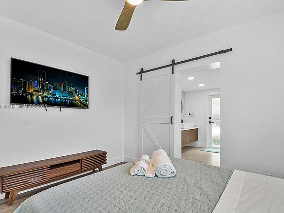 Introducing one of the largest homes in the sought-after Poinsettia Heights neighborhood! This stunning 4-bedroom, 3-bathroom residence has undergone a complete renovation, boasting brand new kitchen and bathrooms, along with a sparkling NEW pool. Enjoy the peace of mind provided by the new AC system and a durable aluminum roof with an impressive lifespan of 50 years. Hurricane impacts windows and doors throughout. Primary bathroom includes a luxurious freestanding bathtub, a separate waterfall shower head, and a sleek floating vanity adorned with contemporary finishes. A unique feature of this home is its full 1-bedroom, 1-bathroom private suite with a separate entrance and its own kitchen, perfect for guests or extended family members. Will be fully furnished upon lease