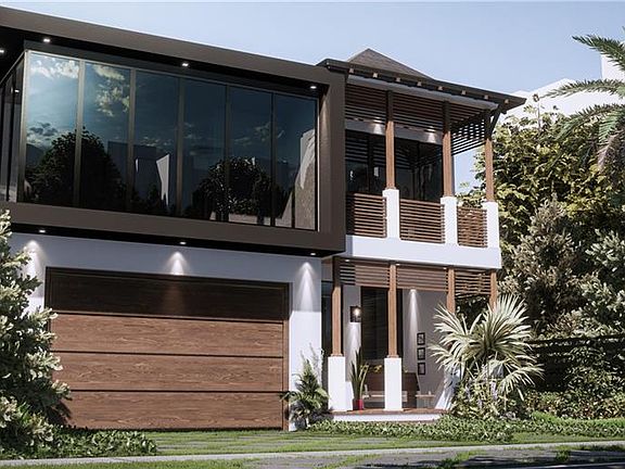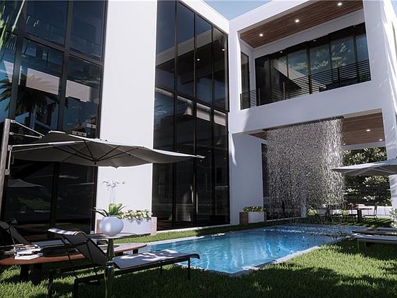 NEW CONSTRUCTION setting a new level of excellence with modern architecture inspired by Bali design. This one of a kind composition pairs function & esthetics, delivering a home conducive to today's lifestyle. The luminous open floor plan is enhanced by 2 story walls of glass, volume & 2 story ceilings & multiple doorways blending indoor & outdoor tropical living. A 1 story waterfall cascades from the ceiling of the covered patio into the oversized pool creating a wall of water separating the two areas. The 1st floor offers a culinary kitchen with large center island overlooking the great rm & formal dining rm, plus an ensuite bedrm & home office. The primary suite boasts 2 covered balconies lavish bathrm & walk-in closet. All bedrms are ensuite & 2nd floor laundry. Sq ft from developer