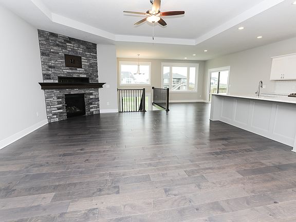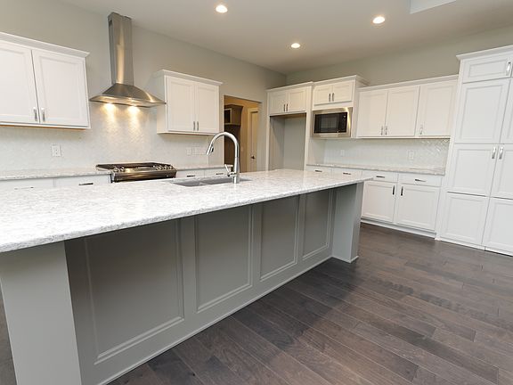 Welcome home to this Mayfield II ranch plan by Jerry's Homes, located on a quiet cul-de-sac with nearly a third of an acre to enjoy. Features beautiful hardwood floors throughout the main living area. An open floor plan conducive to hosting family and friends feels even larger due to the switchback stairs walkout off the back of the house and the covered deck just off the dining area. Kitchen features a gas stove, quartz counter tops, white cabinets and a hidden, walk-in pantry that has enough space to store all your necessities! Master bedroom and bathroom are tucked away for privacy. Basement is fully finished and has an incredible bar! Host games nights or movies nights with room to spare in the lower level family room. Basement has two more bedrooms and another full bath as well. Home has over 3,000 sq feet of finish! Come and tour this beautiful home today!