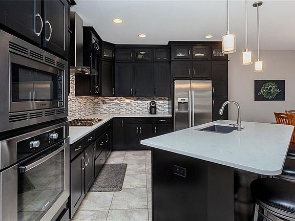 This stunning walkout ranch defines style, comfort and is loaded with the extras that your family desires. Featuring over 3,500 sqft of living space, this 5 br, 4 bath home checks all the boxes. You'll love the details that separate this home from the rest: dual-sided fireplace in the living area, large sunroom, floor to ceiling cabinetry, upgraded gas appliances & wood accents throughout. No detail has been missed in making your home the envy of the neighborhood. The upper level features a large owners suite with attached tiled bath, access to laundry room and a huge walk-in closet. Additional bath and two more bedrooms sharing a jack/jill bath. The walkout lower level has a bonus living area w/ wet bar, 2 more bedrooms, bath and lots of storage. Plan on relaxing on your large deck, the huge fire pit area or the covered patio with hot tub. Bonus shed for your toys and heated garage. Great location on cul de sac, easy access to walking trail & ponds and walking distance to school.