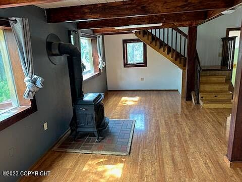 Cozy tri-level with 3 bedroom/1 bathroom home. Has detached (combined) shop and steam bath. Great open floor plan, 2 beds downstairs, kitchen, living and bathroom on main floor, large overlooking loft bedroom. Nice bigger artic entry and wood stove for those long winter months. New custom butcher block countertops and kitchen appliances. Must be prequalified to view the property.