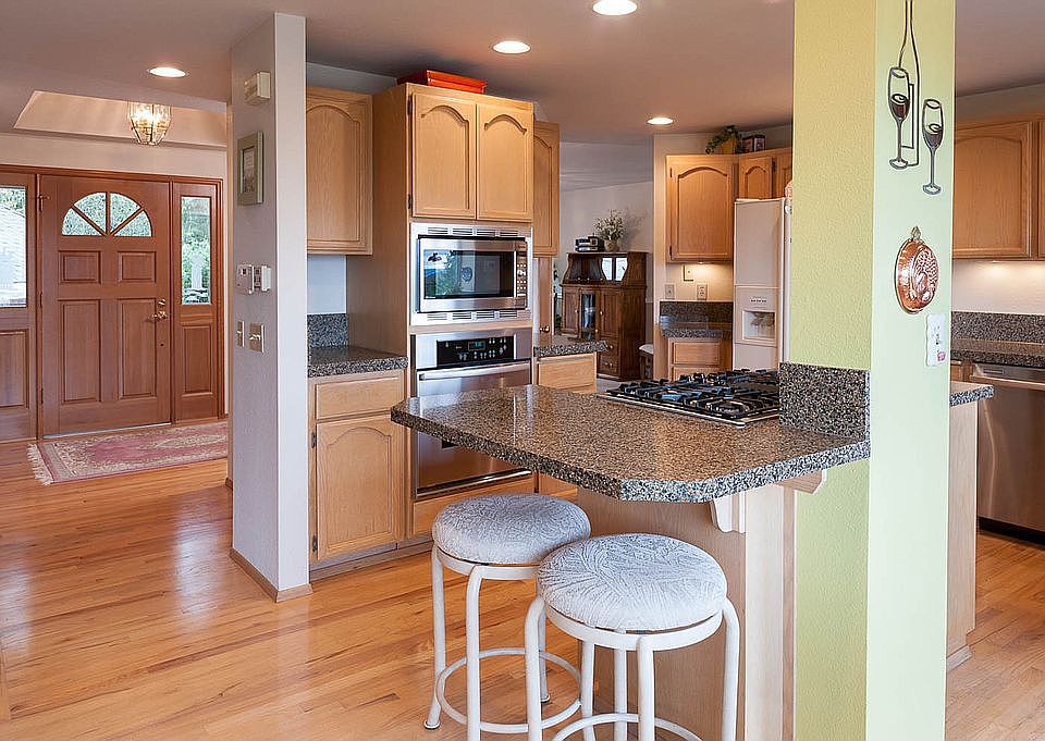 Magnificent Custom 3Bed/2.5Bath. Amazing Views: Bay/Mt. Baker/City Lights. Private Green Belt Yard. Granite Counters, Stainless Appl. Under Cabinet Lighting. W/in Pantry. Hardwood/Carpet. 2 Fireplaces Gas/Wood. Oversized Family Rm/ with Office Space, French Doors lead to Composite Decks/Yard. Lrg M Suite, W/in Closet, Comp. Roof. 2+ Garages/RVParking. Security/Vacuum/Sprinkler System. Walk to Parks/Beach. Easy Access Ferry/Freeways/Boeing, Shopping/Restaurants.