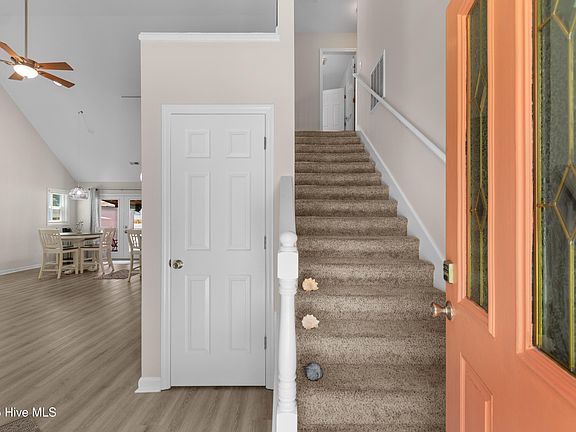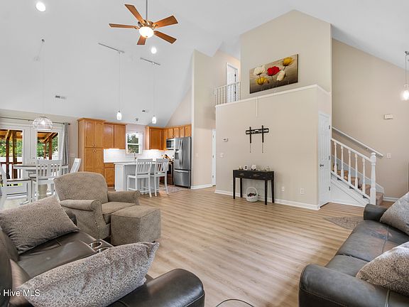 All about location! So close to the Intracoastal Waterway and only minutes to Ocean Isle Beach. Walk into the very spacious open concept Living, dining, kitchen area with vaulted ceilings. The kitchen has stainless steel appliances, tile backsplash, plenty of cabinet space and a nice size island. The primary bedroom is on the main level with en suite bathroom. Upstairs you will find two great sized bedrooms and a 1 full bath. There is a large walk in storage area off the front bedroom. The back yard is very private and fenced in with vinyl pvc that was installed in 2023. The two-car garage has epoxy floors. The owners have kept this home in great shape and added LVP flooring in 2022, new water heater in 2023, new windows and back French door in 2024. The Home has also been freshly painted. Don't wait, book your showing today!