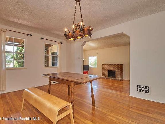 A charming traditional home in Midwick Park area of Alhambra. A wide shaded front porch invites you in. Spacious living room with picture window and high arched barrel ceilings. Step-up formal dining room. Bright vintage kitchen with breakfast nook. Three bedrooms with 1.75 baths. Freshly painted interior. Covered back patio with built-in barbeque. Fenced back yard for the gardener's delight. Two car detached garage.