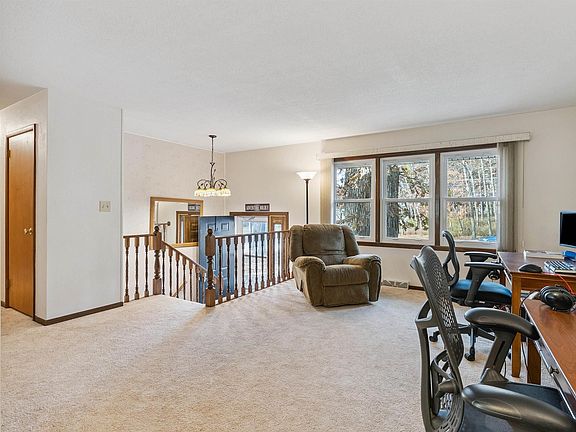 Welcome home to this spacious 4-bedroom, 2-bath home that sits on a large .34-acre wooded lot and offers plenty of room inside and out. The main floor features a welcoming front living room that leads to the kitchen. There is a cozy back living room with a wood-burning fireplace—perfect for relaxing on cool nights. Step outside to the large back deck with built-in seating overlooking the beautiful, wooded backyard. Completing the main floor are 3 bedrooms and a full bath. The lower level offers even more space to enjoy with a third living area and a bonus room ideal for an office or workout space. There's a 4th non-conforming bedroom and a 2nd bathroom with a shower. The lower level also has a separate laundry room with access to the garage, and also a large storage area. Recent updates include a newer furnace and AC (2017), many new windows, a new water heater, and newer water softener. All kitchen appliances stay.
