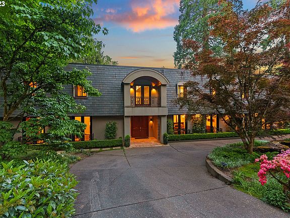 This glamorous Dunthorpe Riverdale estate lives like a European summer vacation destination with dreamy pool, private cabana/guest suite, lush grounds, and elegant finishes, all nestled back at the end of coveted Greenwood Road. Revel in the stunning 19' ceilings with mezzanine landing, parquet and heated floors, 'ballroom' living room with grand hearth, elegant library and dining room, and family room connected to an amazing gourmet marble kitchen with adjacent 2nd full caterer's kitchen plus temp-controlled collector's wine cellar! Truly an estate for the ages, this singular offering has been extensively remodeled and features 15 sets of French doors opening to the water feature, pool, and entertaining decks. Imported Italian fireplaces, a tech room, a classic wet bar, whole-home sound system, and exceptional millwork bring together the best of a classic appreciation for quality with modern living amenities. Stroll down to the twilight pool for a magical evening surrounded by beautifully tended private gardens. Enjoy the serenity privately or play host to destination dinner parties flowing from inside to outdoors with ample space to kick of your shoes and dance. Custom designed with a private primary wing with adjoining fitness room and nearby executive office, plush bedrooms suites, laundry on both levels, an elevator-ready shaft, 5 fireplaces, and prolific built-in closets and storage, you'll find no desire unmet. 2 total parcels totaling .81 acres ensure privacy and plenty of room to create a sanctuary all your own. Accesses Portland's top-rated Riverdale School district and centrally located between vibrant Lake Oswego, nearby Lewis & Clark College, OHSU, and key Portland conveniences.