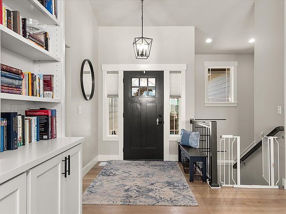 Discover this stunning Morningside rancher with a daylight walkout basement and open-concept great room design. The bright kitchen features a large island and quartz counters, connecting to a cathedral-ceiling living area with a gas fireplace, built-in bookcases, ceiling fan, and abundant natural light. The main-floor primary suite offers a spa-like retreat with a garden tub, walk-in tiled shower, double sinks, and private water closet. Two additional bedrooms complete the main level. Downstairs includes a spacious family room with a second fireplace, two large guest suites, and a hidden door to the theater room. Step outside to a covered deck and enjoy peaceful morning coffee with views toward Mt. Spokane. The backyard is fully fenced with wrought iron, offering level, usable space. Parks and walking paths are nearby, completing this exceptional home.