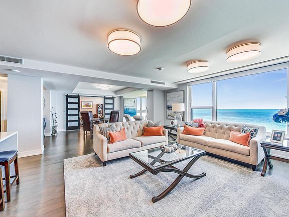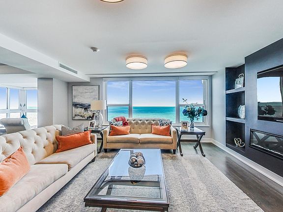 A very special opportunity knocks for fabulous hip city vibes right here in Wilmette! This stunning 2021 designer gut renovation of the largest unit at coveted 1616 Sheridan is a sophisticated and spacious residence unlike any other. Expansive views of Lake Michigan welcome you in the foyer and throughout the living areas of this ONE level 3000+ square foot home, created by combining multiple units. Sought after luxury architects Downey Szafarz designed the residence with today's open floor plan and luxury amenities, and no expense was spared creating this exceptional lakefront home. A true gourmet cook's kitchen features the top-of-the-line Wolf induction range (boils water super fast), two Wolf ovens and microwave. The refrigerator, two frig drawers and bar frig are all by Sub Zero. Gorgeous custom cabinetry, instant hot water, Bosch dishwasher, a large deep composite sink, walk-in pantry and an expansive island make this kitchen sensational, with amazing lake views everywhere. The generous open living/dining area is centered on a lovely fireplace feature with custom built ins and electric blinds. The separate Den has double sliding doors to open up it's convenient bar and wine storage to the main living area, and includes its own powder room for privacy and versatility of space. The Primary Suite has two nicely appointed walk-in closets, a beautiful bathroom with separate walk-in shower/WC area & heated towel rack. Three additional bedrooms, one large enough to comfortably accommodate a bed, Peloton and desk. Two hall baths are gorgeously appointed and designed with practical storage in mind. Incredible thoughtfulness went into designing a condo that both looks and lives amazingly well when downsizing from a spacious home. The space was designed with abundant storage in unit, plus includes basement cage storage. 1616 Sheridan is the hot building on the Sheridan Road strip having recently undergone millions of dollars in recent improvements, including a stunning lobby and stylish hallways, all new windows and sliding doors throughout building, and newer elevators & mechanical improvements. 1616 has excellent reserves and a full list of building updates available. This full amenity building offers 24-hour valet garage parking, a large outdoor swimming pool with waterfall and terraced dining area, a rare generous sandy private beach with a big pier, party room with kitchen off the pool for entertaining, guest suite that can be rented for $85/night, and excellent on-site management & building engineer. Professional landscaping by Chalet. Listen to the waves and enjoy the gorgeous sun rises every morning here, overlooking the sandy private beach area and pier. Walk across the street to all that Plaza del Lago offers including Starbucks, great restaurants & fresh seafood, Jewel, CVS, dry cleaner, and shopping. Langdon Park is just down the block. A carefree beach lifestyle awaits you! Indoor heated garage parking is available at $135/ month per car, reserved exterior space $60 per month.