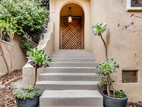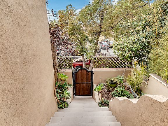 Have you grown tired of viewing cookie cutter houses which lack individuality? You will immediately experience the unique charm of this home from its exceptional exterior design. When you enter this delightful abode you'll appreciate the large west facing balcony giving you a view of the Century City skyline, and captivating sunsets. The restored original hardwood floors, light fixtures, and practical layout work together to make you feel cozy. The livable space sits above street level providing a welcome getaway. Revel in peace and solitude in the private back yard, which includes pomelo, avocado, persimmon, fig, and peach trees. A water filtration system has been installed to service the entire home. This home makes you feel like you're on a vacation every day!