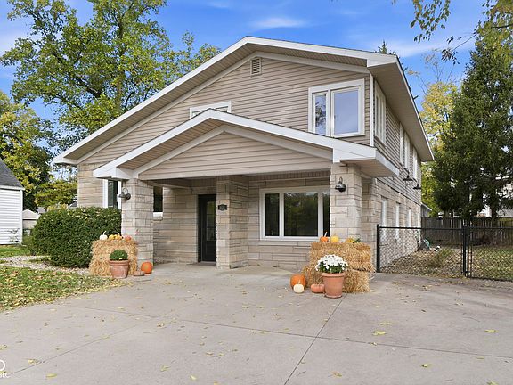 With outstanding proximity to Ball State University, IU Health Ball Memorial Hospital, the White River Greenway, and downtown Muncie, this White River Blvd home offers convenience and charm. Designed across three levels and offering 2,425 SF of living space, this property includes 3 bedrooms, 3 full baths, and a large 2-car detached garage, plus a surprisingly spacious fenced yard. The home features two inviting living spaces-one on the main level, and a more formal living room and kitchen upstairs. The kitchen is a standout with abundant storage, stone countertops, and updated appliances, including an induction and convection oven. The lower level adds even more flexibility with an office area, a built-in desk, and a large tiled, no-step walk-in shower. The current owner has thoughtfully updated lighting throughout. Additional updates include a new AC unit (2023), an 80-gallon water heater, an upgraded outdoor spigot, and a fireplace damper. A virtual tour is available.