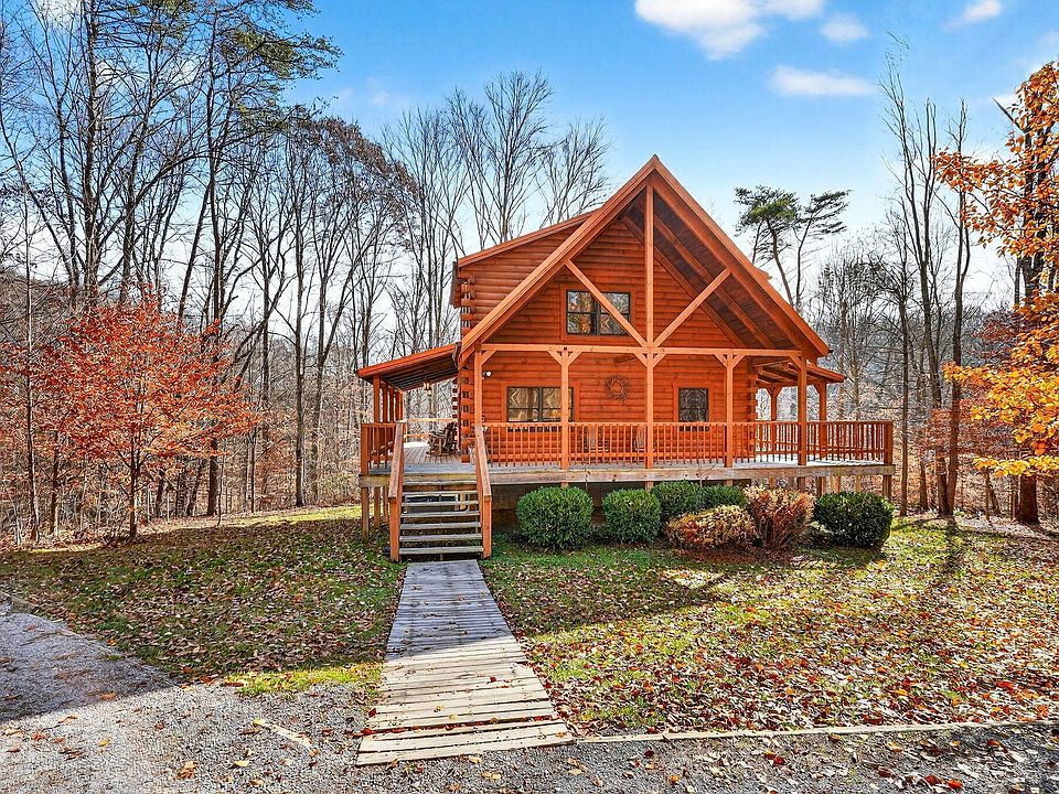 Premium Hocking Hills Retreat, 'The Malbec' cabin, tucked away on 5.06 wooded acres in Big Pine Estates. Location is just minutes from Old Man's Cave and local area attractions, dining, and shopping. Escape to the serene beauty of the Hocking Hills at this stunning 3 bedroom, 3 bath cabin that has been meticulously maintained. This log home combines rustic charm with modern amenities and cozy living spaces. The cabin is being sold turn key, and features two stone floor to ceiling gas log fireplaces, vaulted ceiling with exposed beams, finished lower level with entertainment area and wet bar, detached storage shed, and expansive deck and lower level patio with private hot tub. The cabin has been recently stained and the driveway partially asphalted. 'Malbec' is currently a successful STR and managed by a local property management company. Rental history is available upon request. This is a great opportunity to purchase a second home or vacation rental property generating income. Showings must be coordinated with the cabin rental schedule.