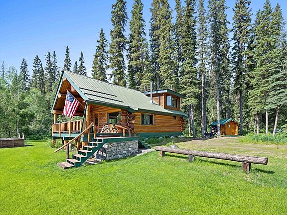 Welcome to a truly one-of-a-kind Alaskan getaway! Nestled on 4.4 serene acres along the beautiful Chena River, this fully furnished property features a custom built one bedroom log cabin plus a charming guest cabin- perfect for hosting all the people you love. (Main cabin is 840sqft and guest cabin 144sqft.) Just 5 minutes from Chena Hot Springs Resort, this property offers the best of both worlds: total privacy and convenience to one of Alaska's most iconic destinations. Whether you're sipping coffee on the expansive front deck, watching the salmon return from their epic runs, or soaking in the nearby hot springs, every day here feels like a vacation! This cabin is thoughtfully equipped for year round use with an oil drip stove that keeps the space above freezing all winter, so it's warm and inviting shortly after you arrive. The wood stove quickly brings the cabin to life, while propane lights add extra warmth and charm. This is a solid structure with quality craftsmanship- tight construction chinked for maximum efficiency. Enjoy the lush lawn and converted garden area-ideal for summer gatherings and hosting intimate cabin concerts under the midnight sun. The location also provides access to incredible nearby hikes including Granite Tors, Angel Rocks and Chena Dome. Despite easy access just off of Chena Hot Springs road, the experience is pure Alaska- peaceful, wild and full of unforgettable moments. Watch moose being born across the river (yes that's happened twice!) The area is alive with sights and sounds of Alaska's most iconic animals: bears, eagles, wolves, mergansers and more! Avid fisherman will enjoy some of the best grayling fishing in the world! This spot is perfect for anyone seeking a true Alaskan adventure without going completely off grid!