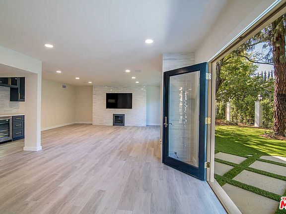 Impeccably remodeled 2 story Transitional, in prestigious Royal Woods of Sherman Oaks, large 12,045 sqf lot, in quiet cul de sac, renovated inside & out w/ modern influences and contemporary appointments: grey porcelain tile floors, recessed lighting & custom light fixtures, kitchen w/ island and white quartz counters, stainless steel chef appliances, custom cabinetry, dual pane metal frame windows, dry bar, built in TVs, home theatre speaker system and entertainment cabinets, new HVAC and coper plumbing. 4 beds, 4 baths including the master wing w/ walk-in closet, beautiful master bath suite w/ herringbone marble tile, stand up shower & brass hardware. Large & fully enclosed backyard offers a newly plastered & tiled pool w/ new equipment, outdoor kitchen w/ built in gas bbq & concrete counters, grassy area. This ultra chic home offers the ideal Californian indoor outdoor lifestyle, while preserving utmost privacy, easy access, minutes from Mulholland Dr, Sepulveda Blvd & the 405 Fwy.