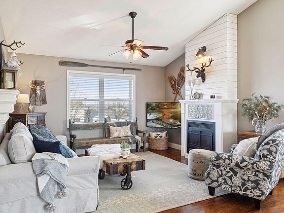 Welcome home to 1617 86th Ave in beautiful Hammond, Wisconsin! You will be enveloped in warmth, coziness and charm as you enter this 5 BD/ 3 BA home, situated perfectly on a gorgeous 1+ acre lot backing up to an open field. Updates and upgrades throughout the home with great flow and tasteful finishes that will instantly feel like home to you. You're going to love cooking in this updated kitchen with quartz countertops/soapstone counter on large center island, loads of storage and stylish SS appliances. After dinner, cozy up to the fireplace in the nearby family room. 3 BDs on main with updated private primary and full baths. Heading down to the finished lower level you will say 'Wow' as you enter the bar area, perfect space for high top seating or a pool table. Large media area, 2 more BDS and another stunning 3/4 BA. Summertime BBQs right out on the deck! The yard is an absolute '10'-enjoy sunsets or stunning fall colors and the joy of wide open spaces. Two storage/garden sheds.