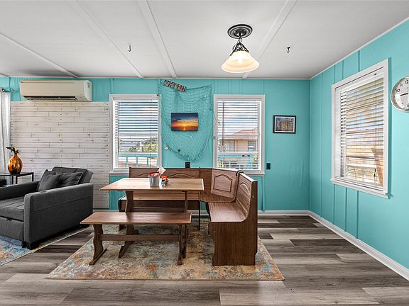 The house and location you’ve been looking for in San Leon! This charming 1-bed, 1-bath coastal cottage sits on a spacious corner spanning 4 lots (13,400 sq. ft.), offering stunning sunset views over the bay. It features an open layout with fresh paint, new trim on ceiling, new vinyl plank flooring and brand new corian counter tops. It has dual mini splits for cooling and heating. New roof in 2021. Relax on the upper deck, the fenced in area downstairs or on the deck in the side yard. Fenced area includes a horseshoe pit and 10x15 metal shed with electricity. Has 2 car garage and plenty of parking for several vehicles, boat or RV. Refrigerator, washer and dryer included. Walk down to the end of the street to fish in the bay. Minutes from Gilhooley's, Top Water Grill, Pier 6 Seafood and Noah's Ark. 10 minutes from the Kemah Boardwalk. Enjoy peace and privacy in a quiet neighborhood. Perfect for anyone looking for a unique little home or investment opportunity.