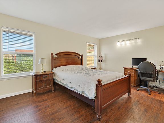Welcome to this beautiful, move-in ready home located within walking distance to local schools. Step inside to an inviting open floorplan featuring a spacious living room with soaring ceilings, perfect for both everyday living and entertaining. The updated kitchen boasts granite countertops, a double oven, and ample cabinet space. A refrigerator and microwave are included with the home. Enjoy the convenience of two pantries and additional space in the utility room, ideal for a second refrigerator or extra storage. Most windows have been upgraded with energy-efficient Pella windows (replaced in 2009 and 2017) and are elegantly covered with plantation shutters, adding charm and functionality. Outside, the backyard offers a serene retreat with a well-maintained lawn and a storage shed that will stay with the home. For added peace of mind, the electrical breaker panel was replaced in 2025 and roof and Fence were replaced in 2024. Don’t miss this opportunity to own a well-maintained home in a desirable location!