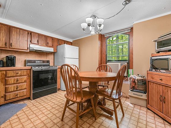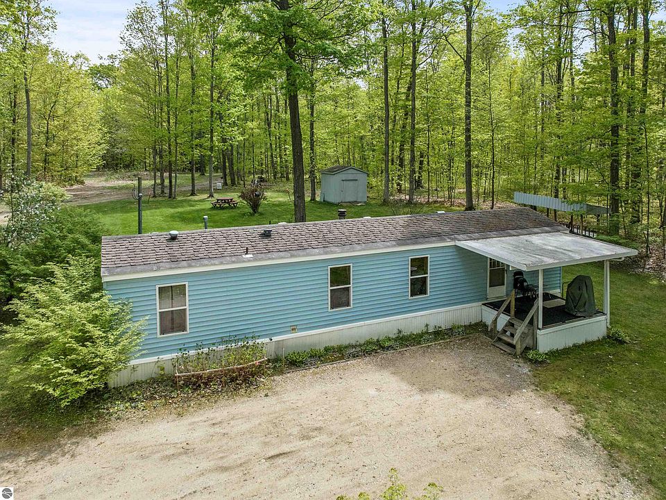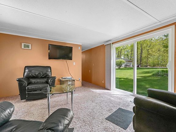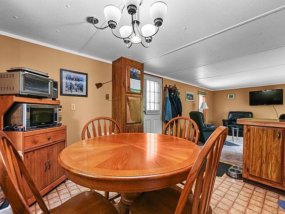 Nestled on nearly ten and a half acres of picturesque land, this charming single-wide home boasts two cozy bedrooms and a spacious living room area. Surrounded by a meticulously manicured yard, the property exudes tranquility and charm. The focal point of the outdoor space is a spacious 30x 40 pole barn/garage, offering ample storage for tools, equipment, or even a workshop.