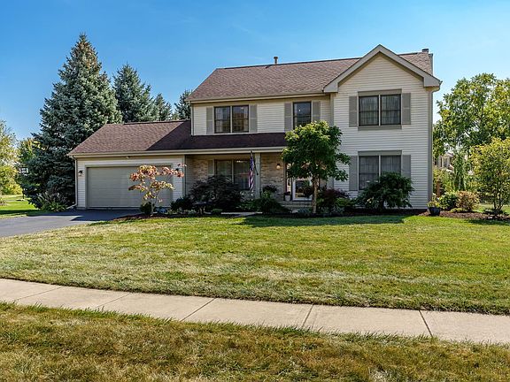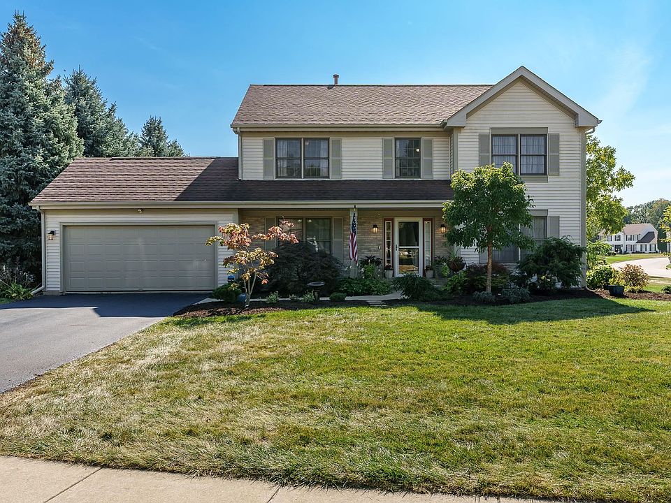 Check out this beautifully updated two-story home in the sought-after Southhampton subdivision! Ideally situated just minutes from the tollway, shopping, restaurants, and the new casino, this three-bedroom, 2.5-bath residence offers over 2,200 sq ft of living space on a large corner lot with stunning landscaping and curb appeal. Inside, you'll find a light-filled entry flanked by spacious formal living and dining rooms with engineered hardwood floors. The updated eat-in kitchen features new stainless-steel appliances, gray cabinetry, and a pantry closet, flowing seamlessly into the bright family room with a wood-burning fireplace with a convenient log lighter. A half bath and main-floor laundry complete the first level. Upstairs, the primary suite impresses with a spacious walk-in closet, rarely found in homes of this style, and a private bath with dual vanities, a jetted tub, and a separate shower. Two additional bedrooms and a full bath complete the second floor. The full basement provides excellent storage and potential for future expansion. Enjoy outdoor living with a large deck and yard, along with an attached two-car garage and a spacious storage shed. Located in RPS 205 and close to parks, shopping, and numerous amenities—this move-in-ready home has it all!