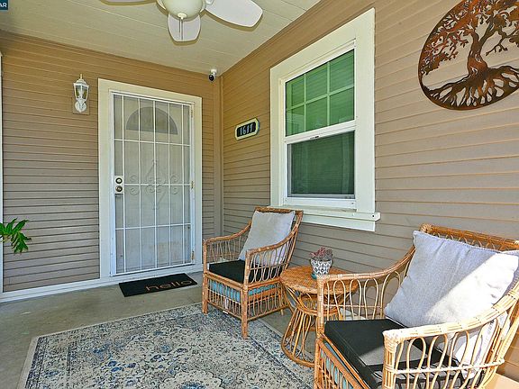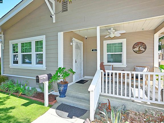 Charming Modern Farmhouse Bungalow near Downtown Martinez! This beautifully updated home blends vintage character with modern conveniences. Step inside to find an open living room and dining room with built in cabinetry. The adjacent showstopping light-filled kitchen features quartz countertops, deep blue painted cabinetry with aged gold hardware, a center island, countertop bar range and ample storage. Primary bedroom has walk-in closet and a woodsy-vibe spa-like bath offering shower with white tile & decorative insets & vessel sink. Sparkling hall bath features jetted tub with white tile surround & pedestal sink. Laundry/mudroom has pantry closet and space for 2nd frig. More features: Hardwood floors, vinyl plank in kitchen and baths, recessed lighting, newer dual pane windows, ceiling fans, newer electrical, central heat, and a security camera system. Outdoors, the fenced front yard welcomes you with a synthetic lawn and vegetable garden and a front porch to sit and visit. The backyard is perfect for entertaining or relaxing, offering a synthetic lawn, crushed granite lounging area, raised garden beds, and a storage shed. A detached oversize garage and canning basement offer extra functionality. Close to downtown shops, restaurants & Farmer's Market, parks and the waterfront!